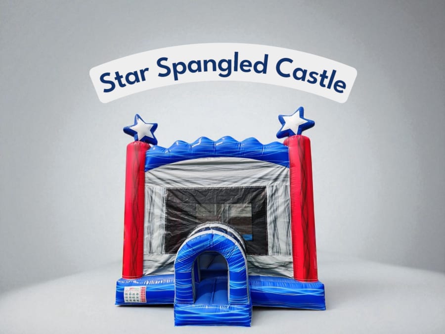 Make your next event a star-studded sensation with our Star Spangled Castle. This eye-catching bounce house is designed to elevate any celebration, from backyard birthday parties to festive holiday gatherings. With its patriotic red, white, and blue color scheme and dazzling star-topped columns, the Star Spangled Castle is sure to captivate guests of all ages and create magical memories that last a lifetime! ππΊπΈ