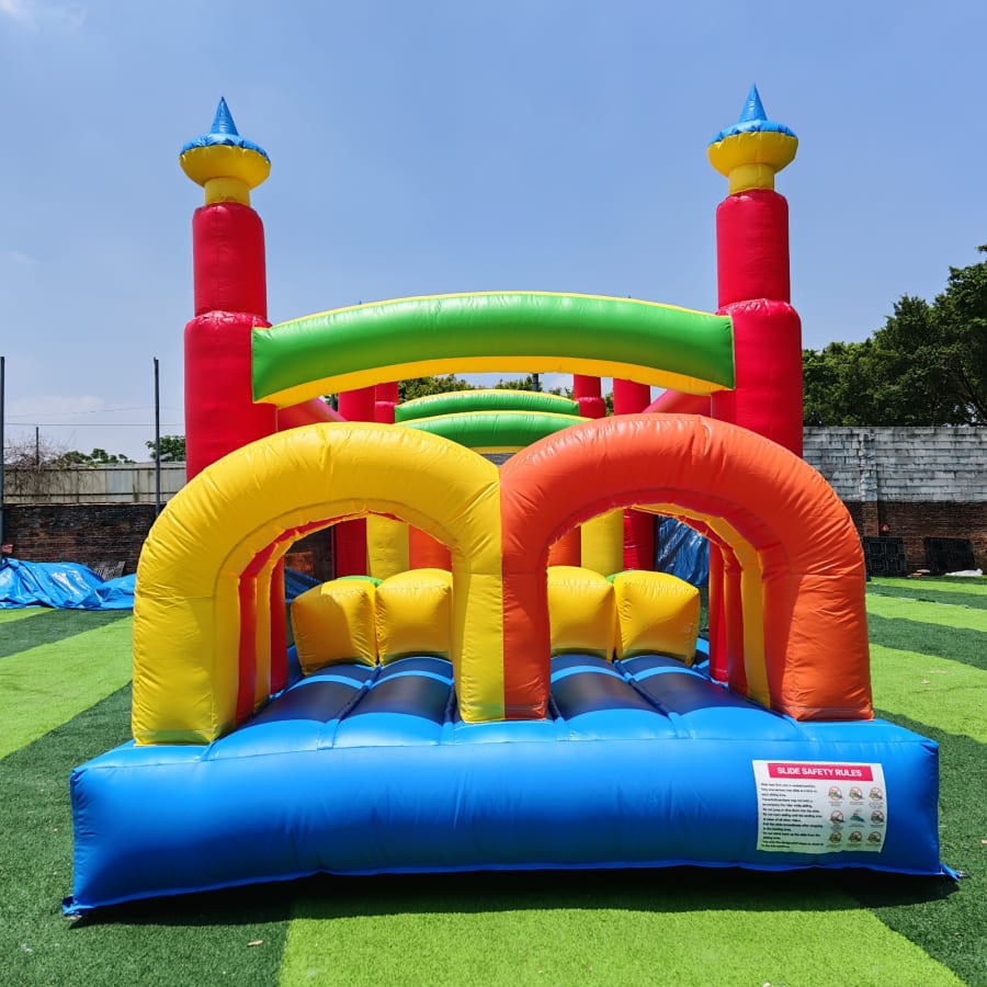 With our Obstacle Course, you get the best in inflatable entertainment delivered right to your location. The Obstacle Fun Rush is not just visually stunning with its bright colors, but it’s also packed with interactive features: