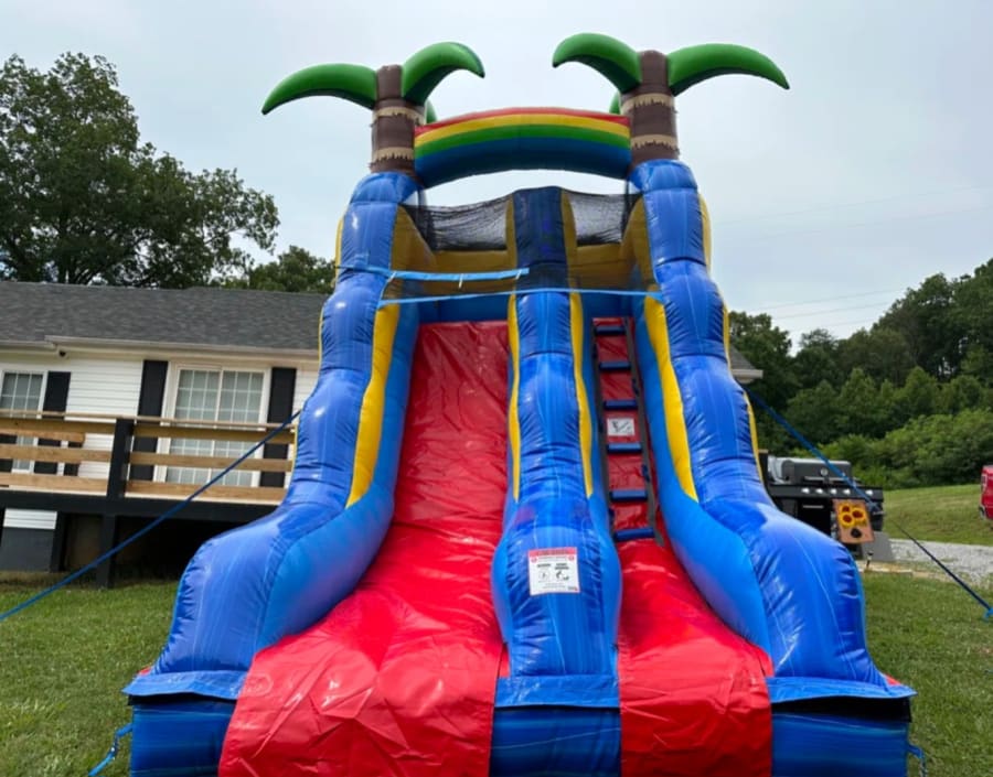 Get ready for non-stop fun and excitement with our Shark Slide! Nothing captures the thrill of summer quite like racing down a giant water slide, and the Shark Slide is the perfect centerpiece for any celebration. With its bold tropical colors, towering palm trees, and eye-catching shark theme, this inflatable water slide is a guaranteed hit for kids and guests of all ages. 🦈🌴